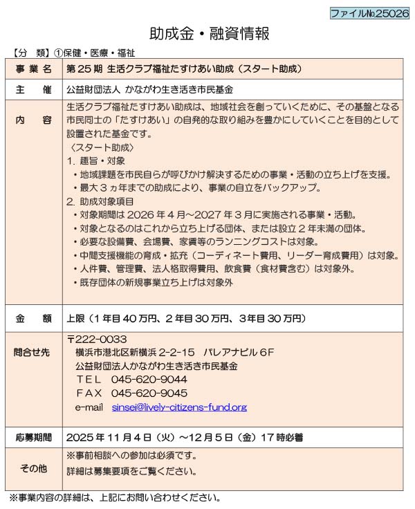 助成金・融資情報一覧