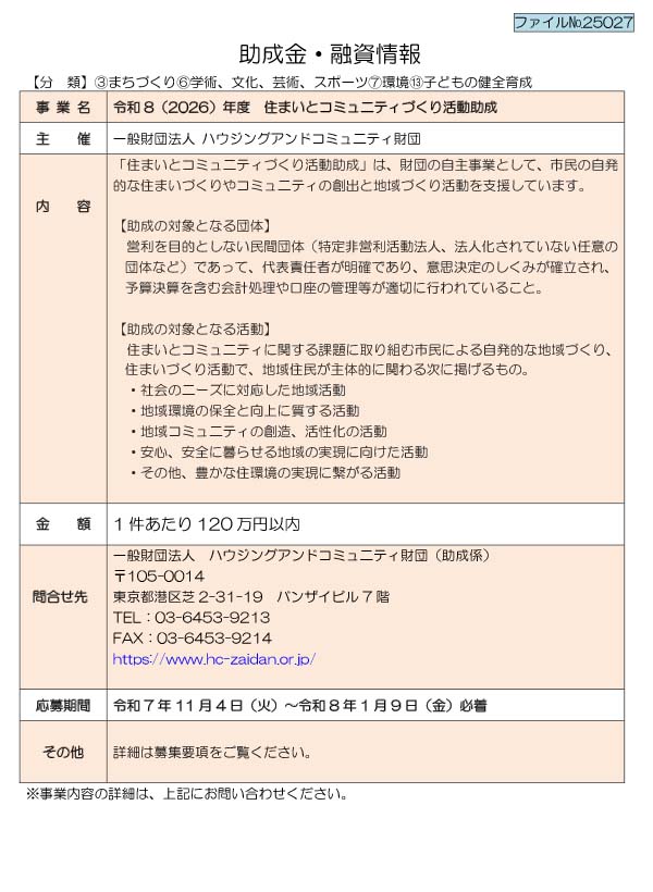 助成金関連情報~下記URLをご確認下さい